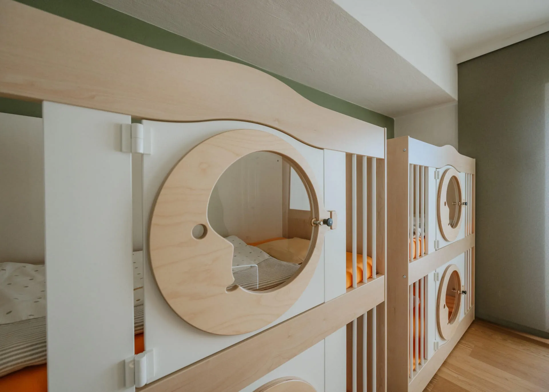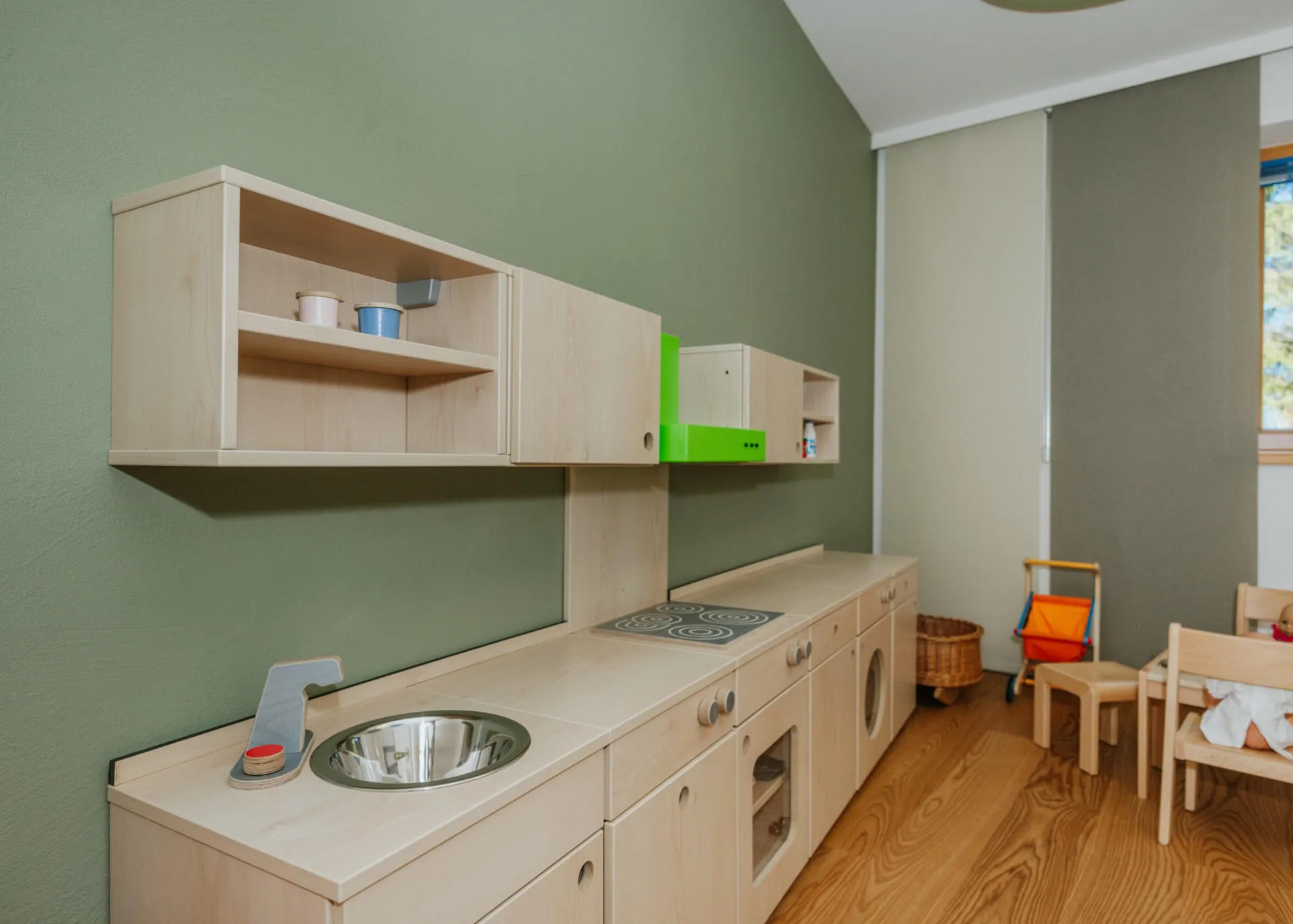 Unser babymio-Team betreut Ihre Lieblinge kompetent und mit aller Fürsorge. In unserer Babybetreuung gibt es weiters eine Milchküche, einen Wickelraum und ein eigenes Schlafzimmer mit Gitterbetten und Hängematte.